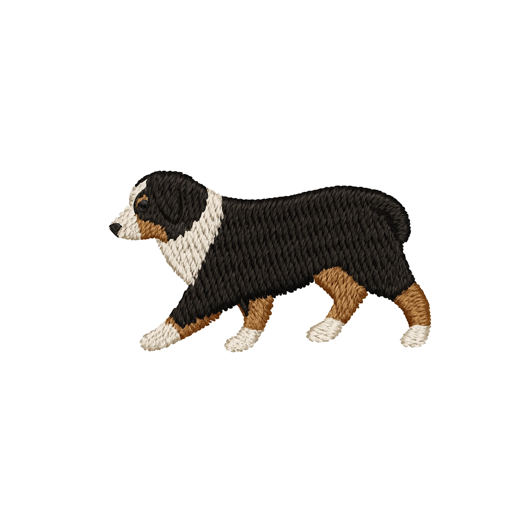 A black tri Australian Shepherd named Acadia, the dog this brand was built around. He came first. The hoodie came after.